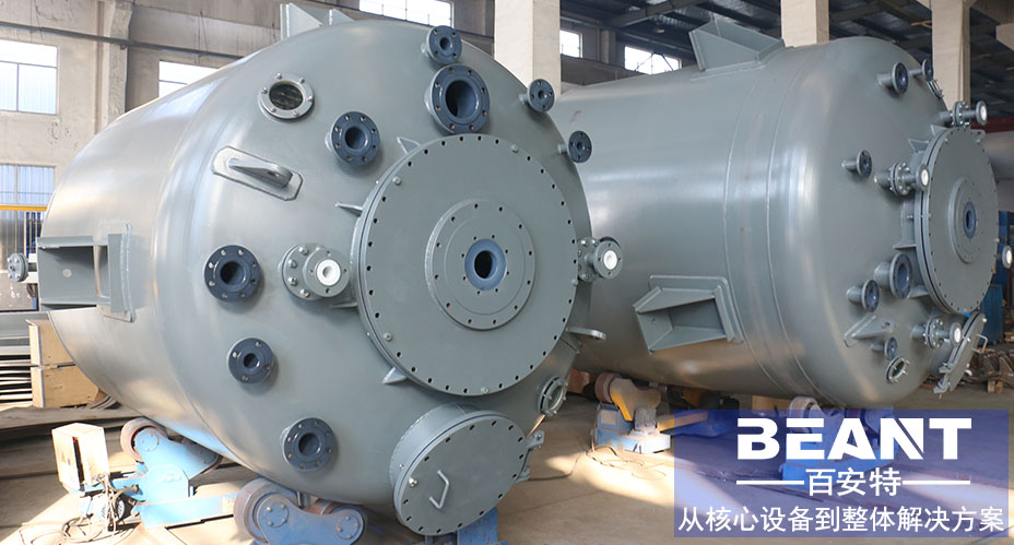 噴涂襯氟反應釜采用的氟樹脂靜電噴涂工藝是當今世界上最先進的防腐工藝,首先對設備表面經過高溫除油、除銹,然后對設備表面進行噴砂粗糙化,噴涂一層特殊底漆、然后將氟材料粉末通過高壓靜電設備充電,并在電場的作用下均勻的吸附在被加工的設備的表面上,然后經過高溫烘烤,熟料顆粒就會融化成一層致密的保護層牢牢附著在工件表面,例如1mm厚的涂膜,也需要反反復復5-6次噴涂和烘烤,一般最厚可以噴涂到2mm,氟材料有PTFE、PFA、FEP、ETFE、ECTFE、PVDF幾種。采用噴涂襯氟的設備已廣泛應用于化學工業、制漿與造紙業、食品工業和半導體工業中。