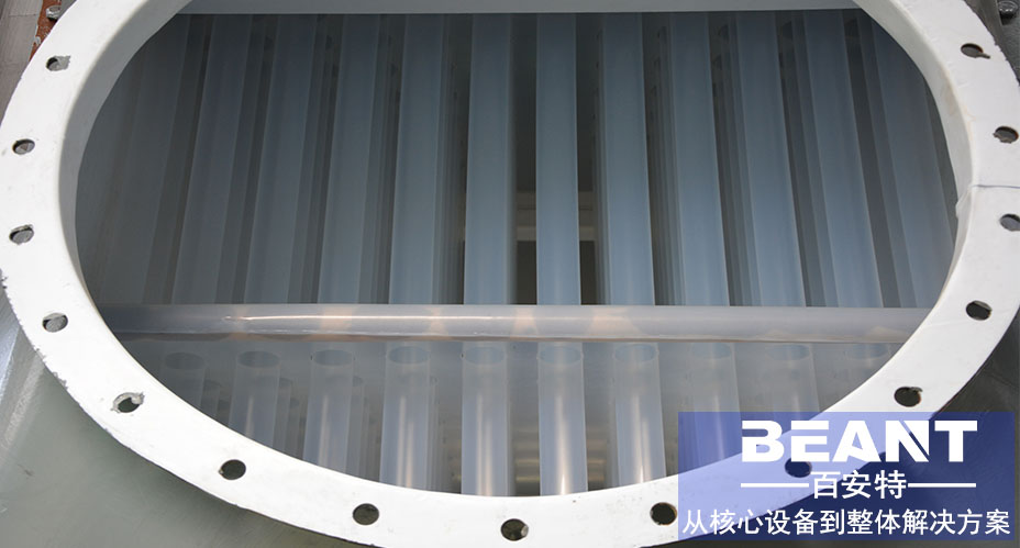 氟塑料管束材料自身具有自清潔特性,防沾黏,易清洗,不易結垢,因此維修簡單,省事省錢;采用毛細管換熱,表壁薄、口徑小、抗壓高、耐溫柔軟性好。