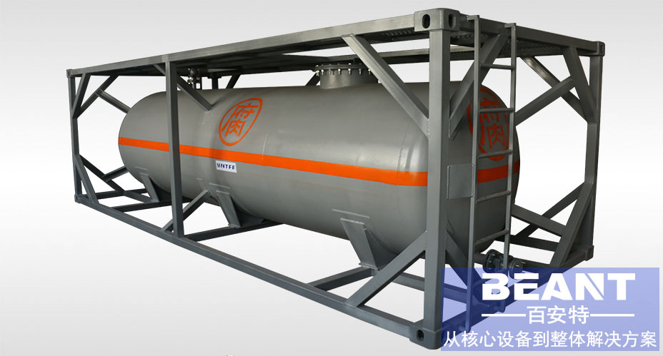 罐體四周有起保護和吊裝作用的角部承力框架。罐箱的外部框架尺寸完全等同于國際標準20集裝箱的尺寸(長20英尺,寬:8英尺,高:8英尺6英寸)??捎糜诠罚F路及水上運輸??裳b載高達到14300到31000升(甚至更大)的流體貨物。